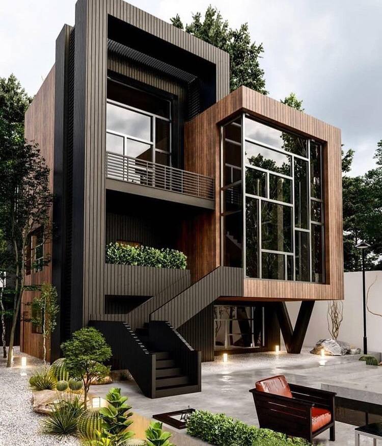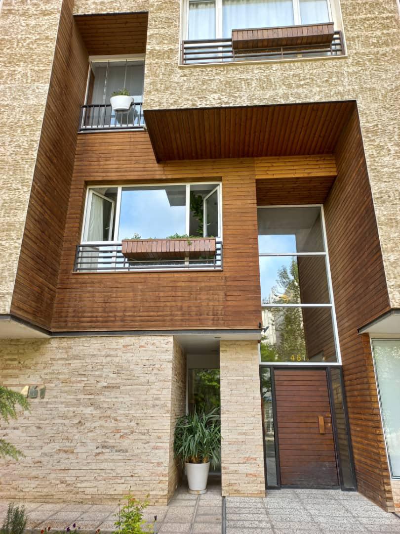 • نمای مدرن و مینیمال: استفاده از خطوط صاف، چوب با رنگ طبیعی یا تیره، مناسب برای ساختمان‌های شهری و لوکس.